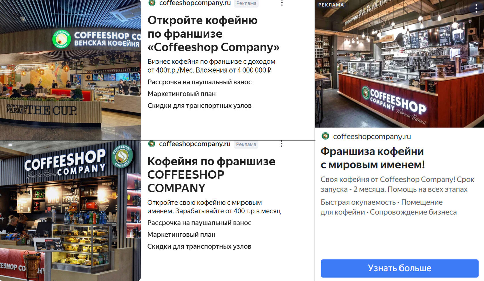 Смарт-баннеры использовали таргетинг на предпринимателей, интересующихся инвестициями и бизнесом в сфере общепита.