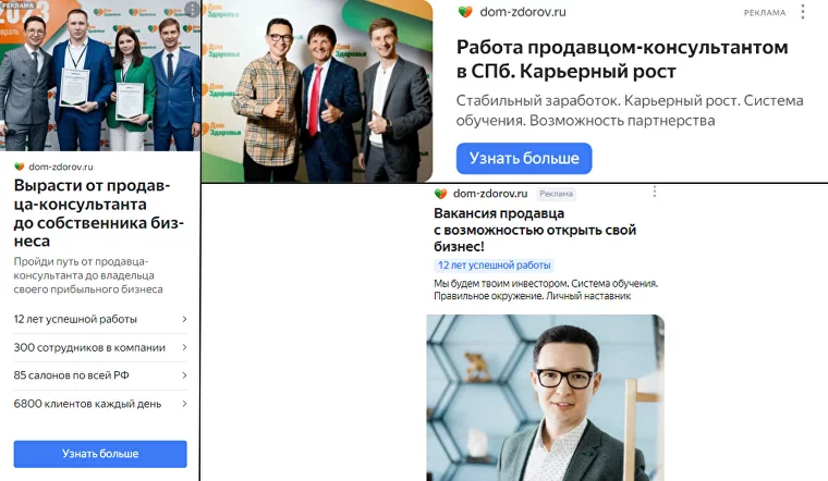 Наполнение объявлений:- Использовал мотивирующие сообщения: «Работа с перспективой открыть свое дело», «Начни карьеру с нуля и вырасти до владельца бизнеса».