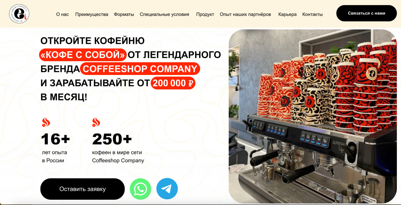 «Франшиза кофейни. 1,2 млн ₽ — и вы в бизнесе! Узнайте подробности.»