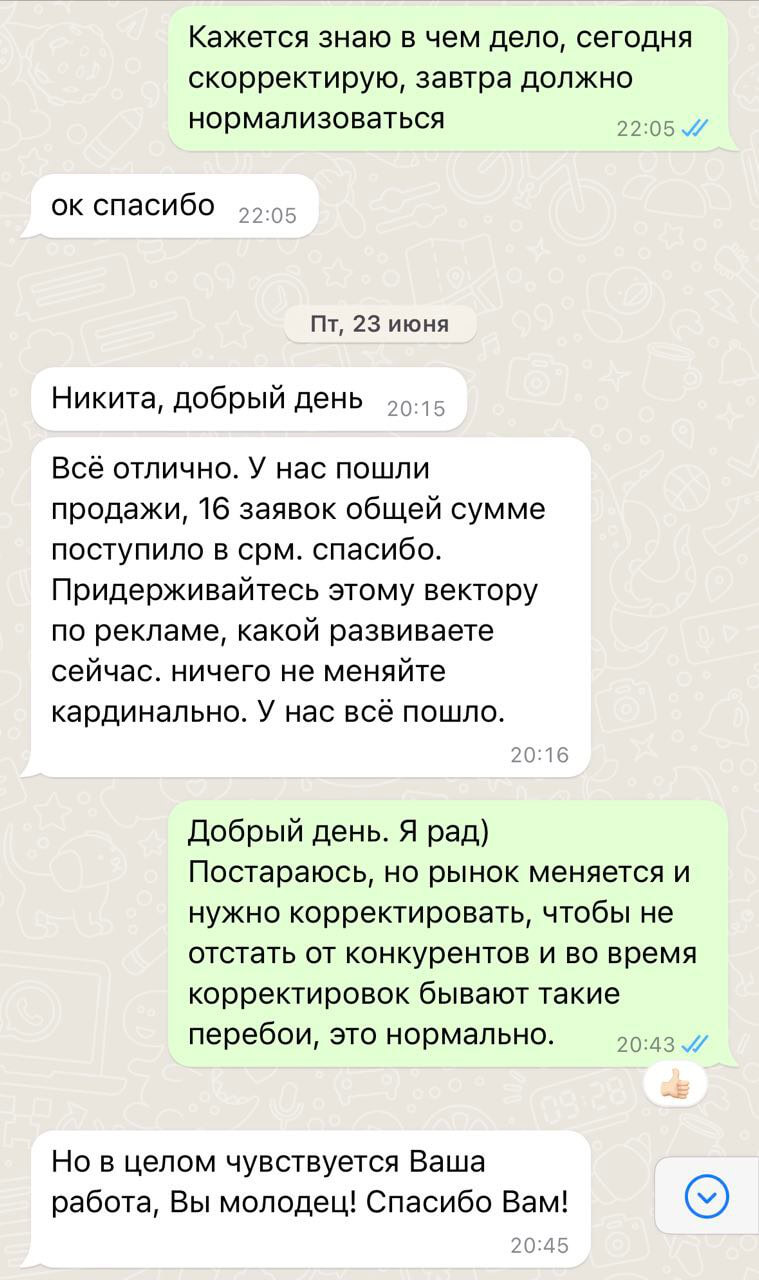 Оставьте заявку — я бесплатно разберу вашу нишу, расскажу, какие форматы рекламы подойдут и какой бюджет нужен, чтобы реально получать клиентов. Если всё ок, начнём работать.