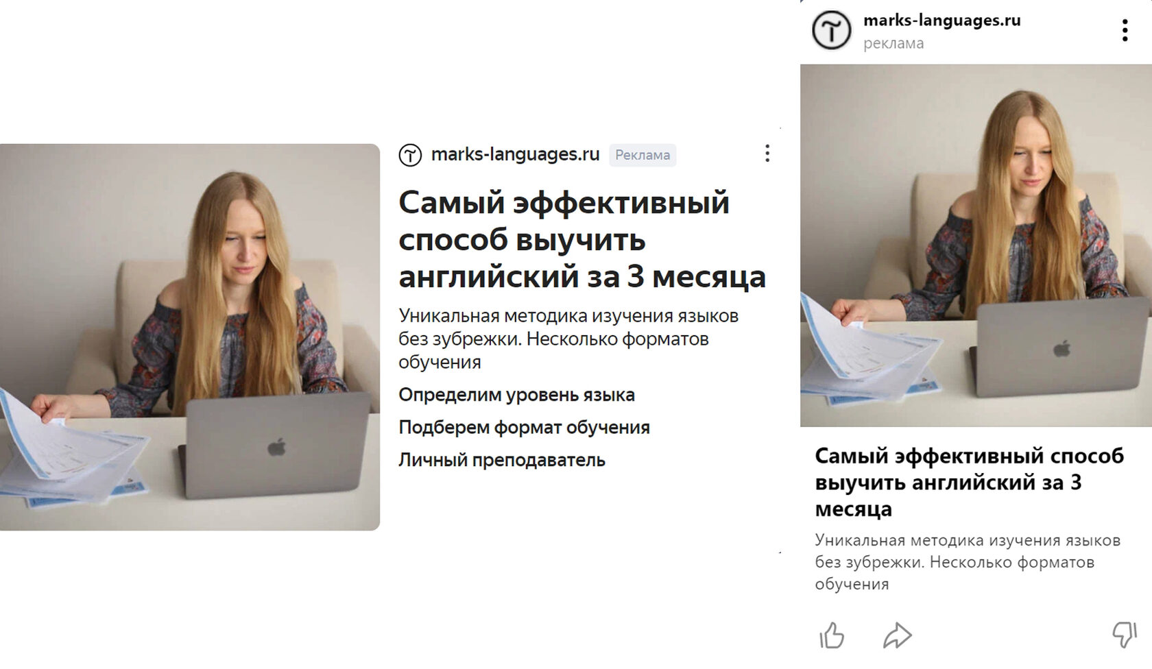Мелкие школы и частные репетиторы, рекламирующие бесплатные пробные уроки.