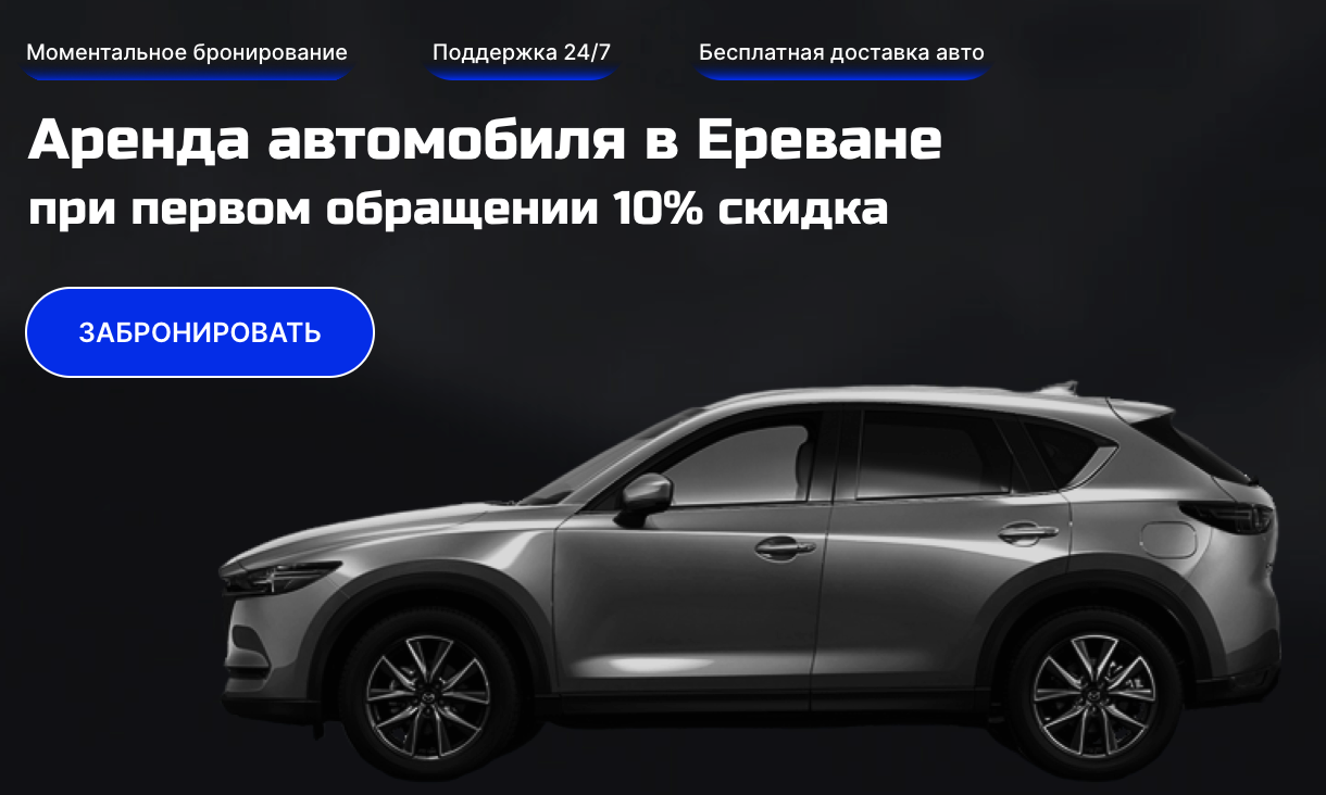Выделил ключевые преимущества клиента: легкость оформления, отсутствие залога, доступные цены и доставка по Еревану.